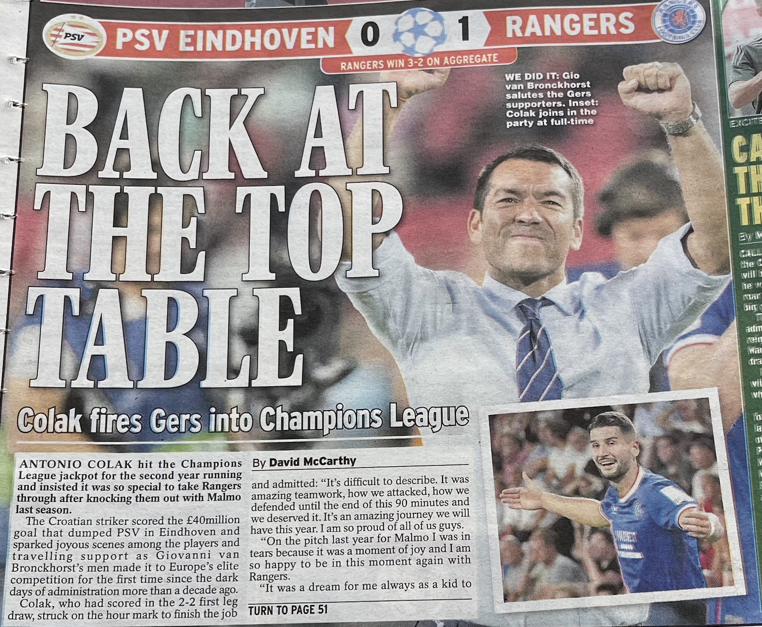 The origins of the Rangers’ goal on the hour lie with Pep Guardiola. Manchester City’s ability to pass the ball from goalkeeper to centre forward is mesmeric and truly a thing of beauty. With most other teams, it’s simply that old-fashioned term “fannying about”. PSV – specifically keeper Benitez and centre-half Ramalho – were caught in F.A. mode by the ever-alert Tillman and his calmness in slotting the ball to Colak belied his twenty years. This was very much a coming-of-age game for Malik, maybe proving to some doubters that he can not only last the full ninety minutes, but continue to show the classiest of touches, flicks and spins. I wonder if we will take up the option to buy?!