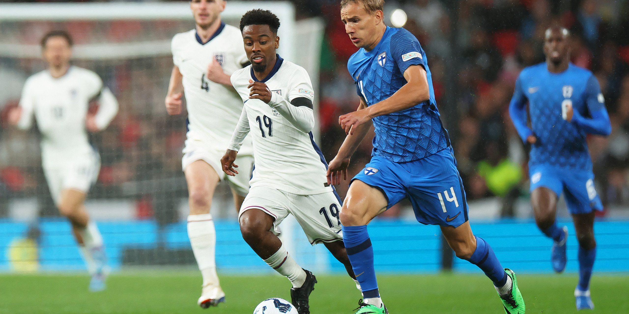 Having received the ball from Trent Alexander-Arnold just outside the Finland box, Gomes then picked out an advancing Jack Grealish with an incisive threaded pass that carved open the home defence, with the Manchester City man then duly slotting him.